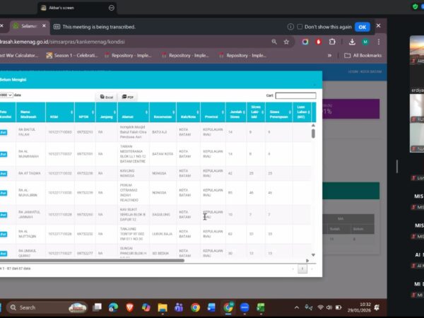 Batam — Menindaklanjuti Surat Edaran Direktorat Kurikulum, Sarana, Kelembagaan, dan Kesiswaan (KSKK) Madrasah Nomor B-44/Dt.I.I/HM.01/01/2026, Seksi Pendidikan Madrasah terus